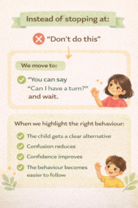 And always remember — the focus is not on correcting the child, it is about helping them understand what they can do instead.